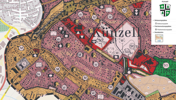 - Auszug aus dem Flächennutzungsplan der Gemeinde Künzell (W = Wohngebiet / M = Mischgebiet / G = Gewerbegebiet)