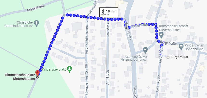 - Parkmöglichkeiten am Bürgerhaus und Fußweg zum Himmelsschauplatz